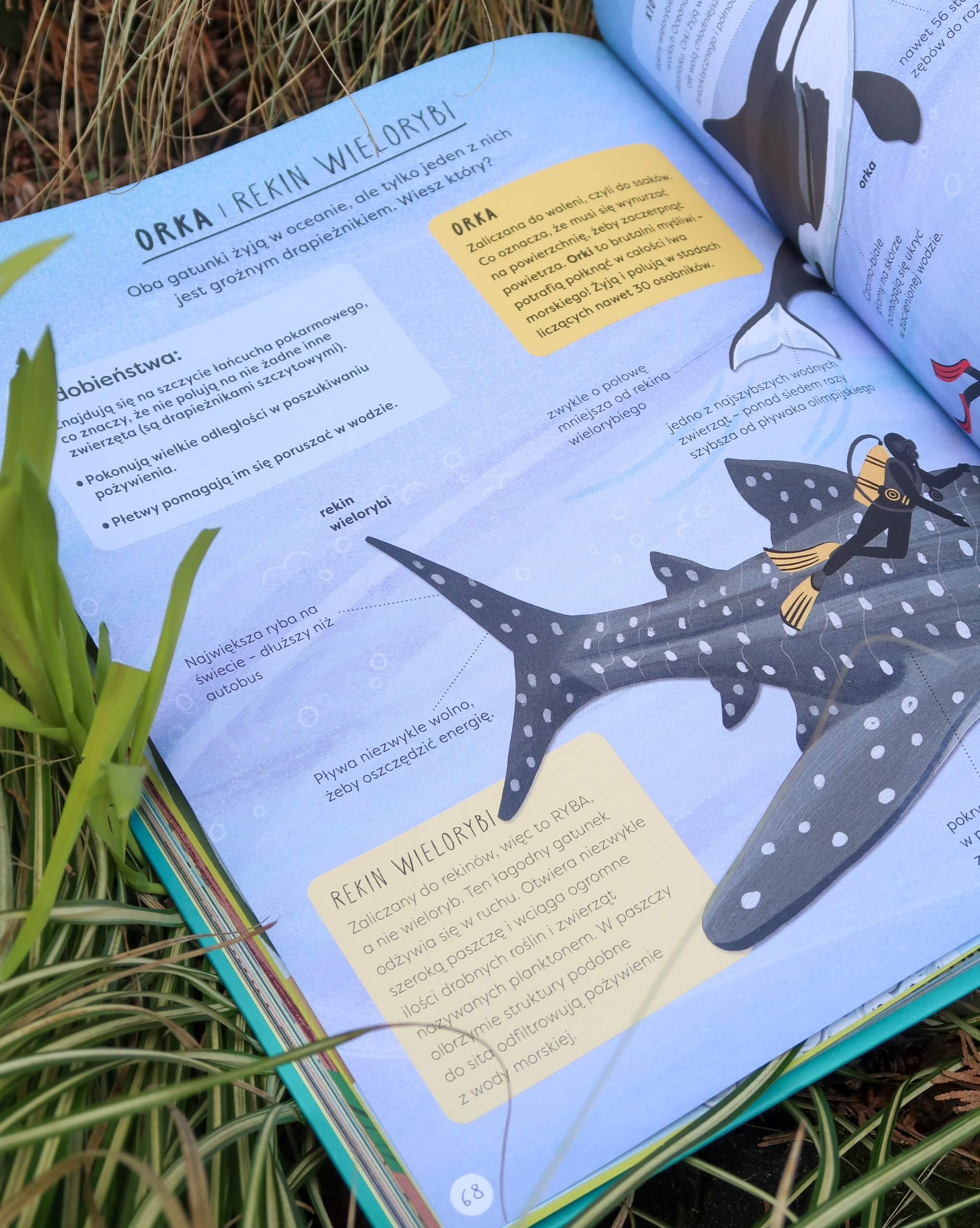 Jaka jest różnica między Arktyką i Antarktydą – to ostatnio u nas hit i stałe pytania. Krokodyl i aligator – nie pamiętam ile razy Filip o to pytał – a tu mam gotowe dwie strony! Filip uwielbia też orki i zawsze zadaje mnóstwo pytań – tutaj mógł dowiedzieć się czym różni się od rekina wielorybiego. Mamy też często podejmowane tematy różnic między osą i pszczołą, grzmotem a błyskawicą, królikiem i zającem.