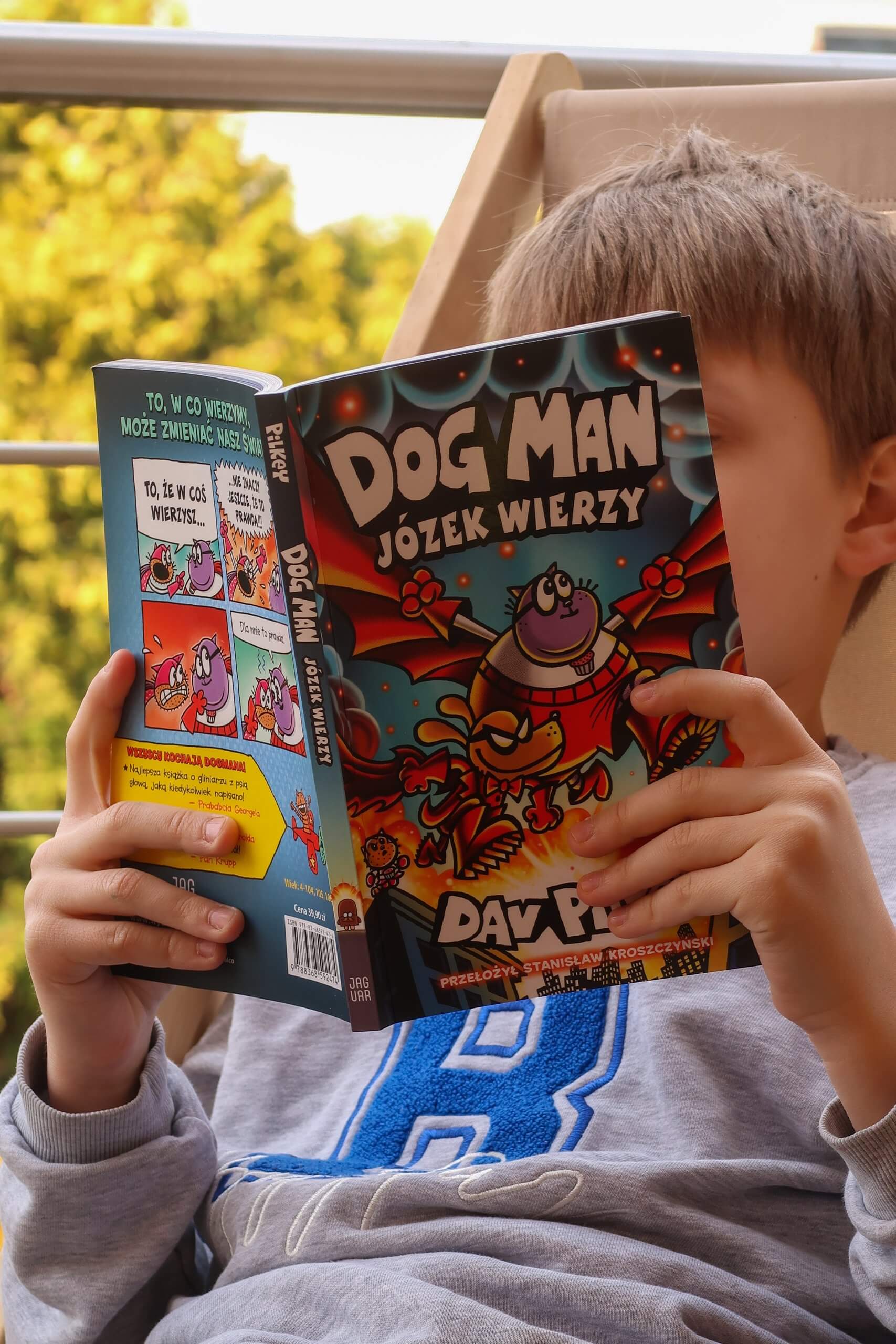 Już kiedyś wspominałam Wam, że Dziubdziak bardzo lubi komiksy. Czyta teraz bardzo dużo i stale szukamy jakiś nowości, które mu podpasują. I tu zobaczyłam nową część „DogMan Józek Wierzy”.