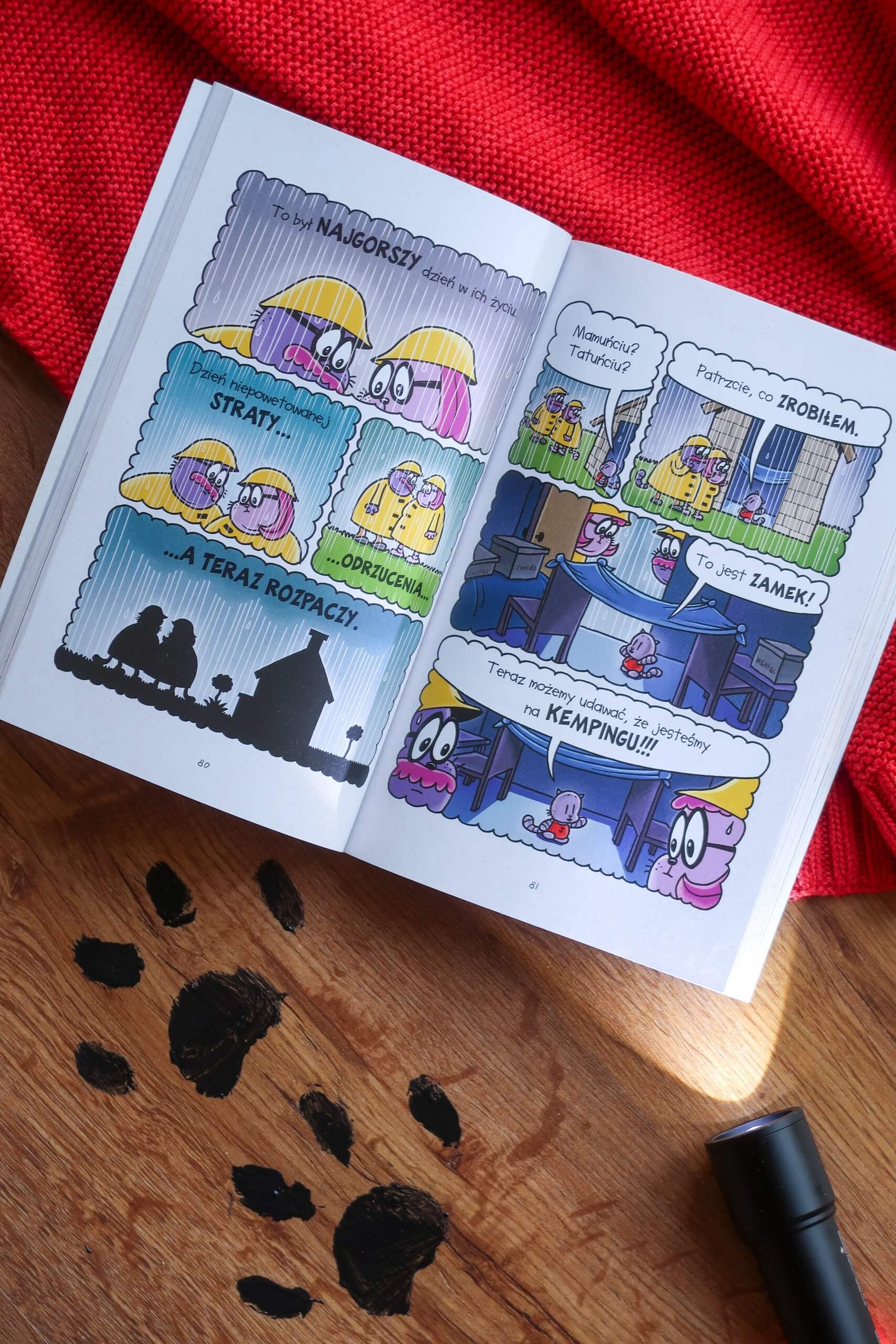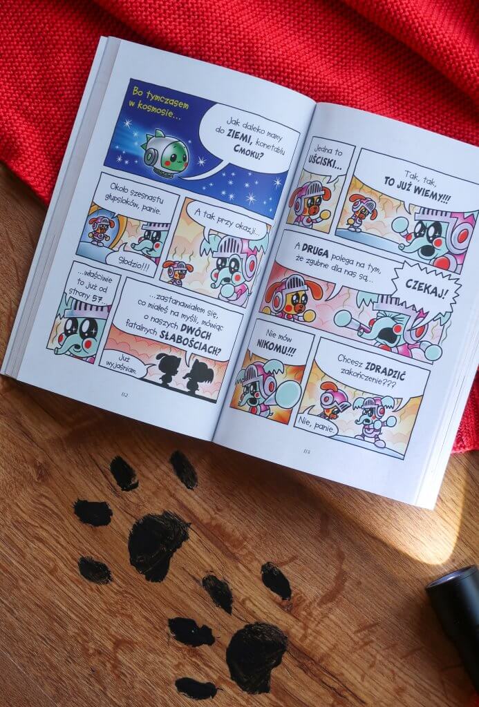 Książka zachęca też do aktywnego czytania – ruchome obrazki, instrukcja rysowania dzidzi Dziadersa, Dogmana i Profesora Czoko Loko.